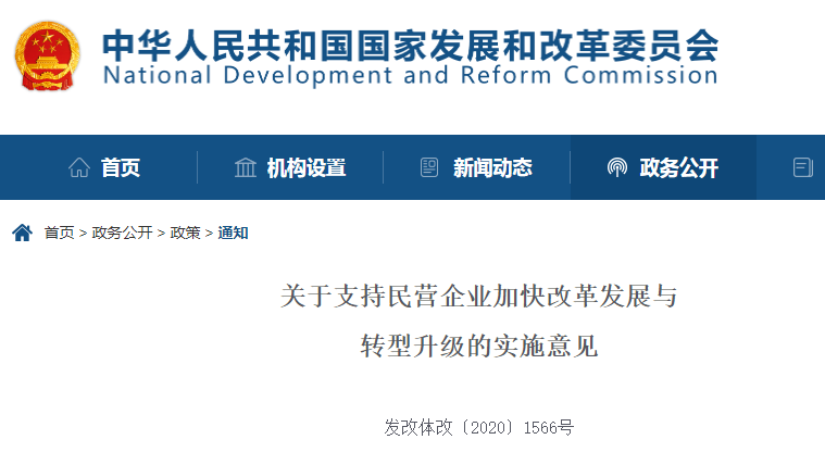 2020年10月23日,国家发展改革委、科技部、工业和信息化部、财政部、人力资源和社会保障部、人民银行等六部门联合发布《关于支持民营企业加快改革发展与转型升级的实施意见》(以下简称《意见》),提出切实降低企业生产经营成本,继续推进减税降费,进一步降低用能用网成本,深入推进物流降成本,加大对民营企业信贷支持力度,支持开展信用融资,拓展贷款抵押质押物范围。《意见》主要包括九个方面,共38条内容。
